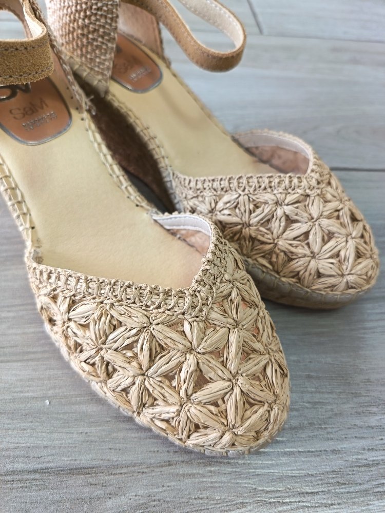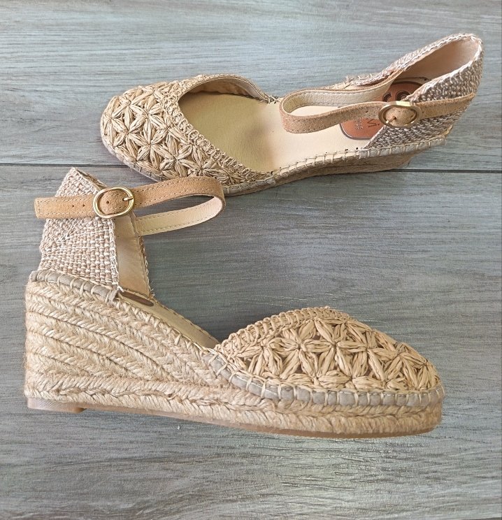 ALPARGATA DE MUJER CON CUÑA DE 7 CM FABRICADA EN ESPAÑA. HECHA CON MATERIALES DE PRIMERA CALIDAD ARTESANALMENTE.  ESPARTO NATURAL.