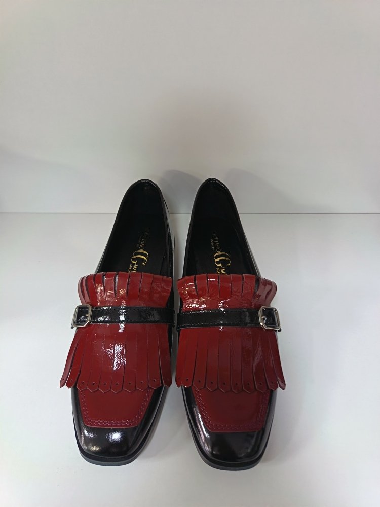 ZAPATO DE PIEL ESTILO MOCASIN CON LENGUETA EN GRANATE. COMBINACIÓN PERFECTA. FABRICADO EN PIEL Y HECHO EN ESPAÑA.